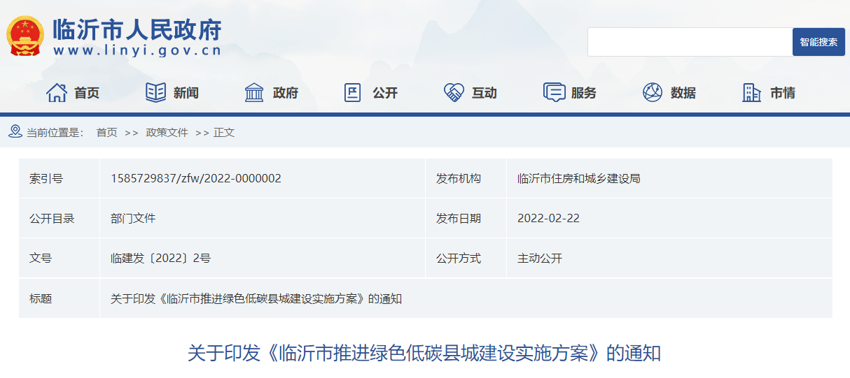 地方政策山東臨沂市推進綠色低碳縣城建設實施方案: 加快發展淺層地熱能建筑應用