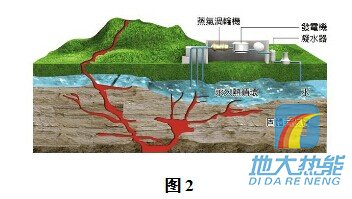 1)熱干巖過程法.與那些只從火山活動頻繁地區的溫泉中提取熱能的方法相比,熱干巖過程法將不受地理條件限制,可以在任何地方進行熱能開采.首先將水通過壓力泵壓入地下4~6 km深處,此處巖石層的溫度大約在200℃左右.水在高溫巖石層被加熱后,通過管道加壓被提取到地面并輸入到熱交換器中,熱交換器推動汽輪發電機將熱能轉化成電能.同時推動汽輪機工作的熱水經冷卻后可重新輸入地下供循環使用.這種地熱發電的成本與其他再生能源的發電成本相比是有競爭力的,而且這種方法在發電過程中不產生廢水、廢氣等污染,所以它是一種未來的新能源.