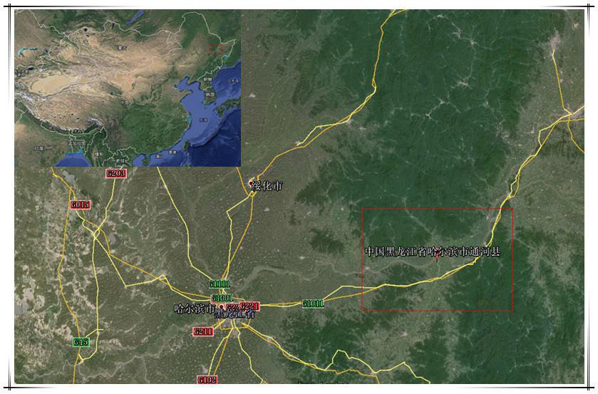 通河縣位于黑龍江省中部,小興安嶺南麓,松花江中游北岸,地理坐標(biāo)東經(jīng)128°7′30″—129°24′30″,北緯45°52′30″—46°37′30″之間。東與依蘭縣為鄰,西與木蘭縣毗鄰,南與松花江為界與方正、賓縣隔江相望,北以平頂山分水嶺為界與鐵力市、慶安縣接壤。通河全境東西長約89.7公里,南北寬約87公里,幅員面積5678公里。通河縣北部山區(qū),屬小興安嶺山脈。最高峰海拔1100米,一般海拔平均400-800米。最大坡度70°,溝壑峽谷多呈V型。成土母質(zhì)屬于基巖、沖積堆積物。其地殼厚度可達70公里,為上、下兩層,上層為花崗巖,由于富含硅和鋁,又稱硅鋁層。下層為玄武巖,富于含硅和鎂,也叫硅鎂層。地殼表層因受大氣、水、生物作用,形成土壤層、風(fēng)化殼和沉積層,厚度介于0-10公里之間,占總面積的70%,中部丘陵和淺山區(qū),山勢平緩,峽谷開闊。一般平均海拔在200-500米之間,山頂坡度40°以上,坡降15°-20°左右。物理風(fēng)化作用較強,成土母質(zhì)屬于殘積物和坡積物。丘陵屬于中山區(qū)。南部與山前臺地緊緊相連,分布在山區(qū)外圍,呈海拔200米左右丘陵,下屬寬闊小平原,土質(zhì)肥沃,都已開墾成耕地,丘陵上適宜造林和發(fā)展果樹生產(chǎn)。丘陵下部往南延伸趨近于松花江北岸屬于山前臺地高平原區(qū)。