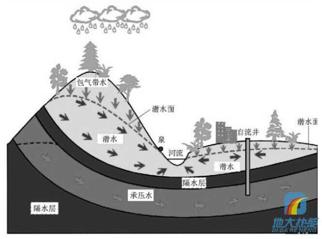 包氣帶水 是指埋藏于包氣帶中的地下水,包氣帶指巖石空隙未被地下水充滿的地帶,多為吸著水或薄膜水,而重力水較少。如果下滲水多時(shí),可出現(xiàn)較多的重力水。 運(yùn)動(dòng):主要作垂直方向上的運(yùn)動(dòng),如重力水常由上向下運(yùn)動(dòng)、毛細(xì)水由下向上運(yùn)動(dòng)。 主要包括:土壤水、上層滯水、沼澤水、沙漠及濱海沙丘中的水等。一般水量不太,易受污染,故不易作為工農(nóng)業(yè)供水水源,但對于植物生長具有重要意義。 潛水 地面以下第一個(gè)穩(wěn)定隔水層以上具有自由水面的地下水 承壓水 充滿兩個(gè)隔水層之間的承受靜水壓力的地下水。